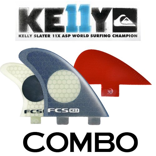 Ride like an eleven time world champion with the FCS Kelly Slater K2.1PC Quad/ Nubster Trailer Fin Combo Set. That`s what happens when you pair the K2.1 PC fin (Kelly Slater`s signature world beating fin template) with the new FCS VS Nubster for an increase in drive and will make your quad set-up feel faster, smoother, and will stabilize your board for directional control.